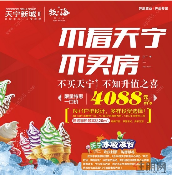 为答谢新老客户对天宁新城的关注与支持,天宁·牧海决定于本周六上午(7月20日)10:00在社区里面举办冰淇淋节。活动当天到访客户均可享受可口冰淇凌一个,送完即止。届时活动现场还设置免费抽奖环节,奖项**为奖液晶电视一台。欢乐不断,礼品多多。