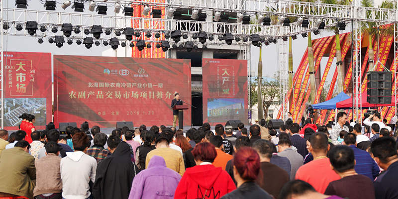 2019年1月20日下午,北海市重点招商引资项目“北海国际农商冷链产业小镇”一期北海农副产品交易市场项目推介会在北海工业园区盛大举行。