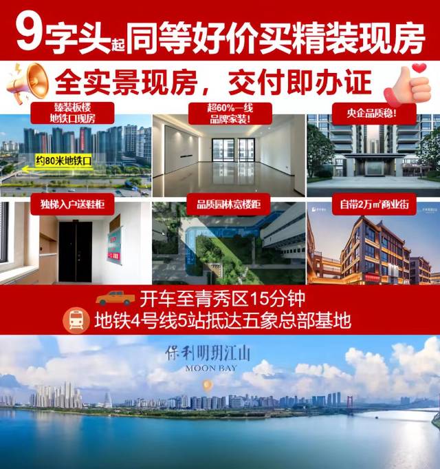 保利明玥江山|精装板楼现房 🔥7套te价房曝光 单价低至9691元/㎡ 🔥购指定房源 再享额外补贴13000元 —————————— 📍te惠房源推荐: 10#901 143㎡ 仅9691元/㎡ 8#402 118㎡ 仅10060元/㎡ —————————— ✅地铁口|带装修现房